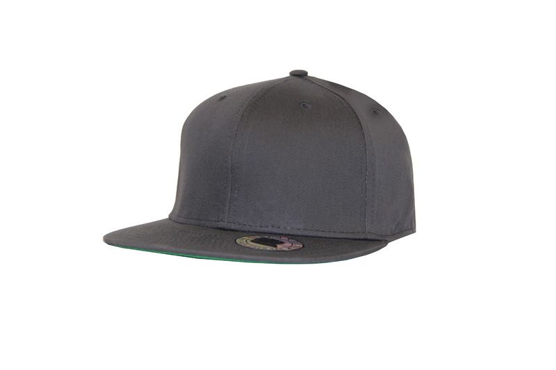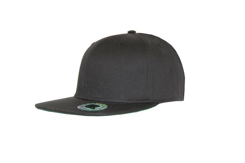 Constructed, 6 panel, flat bill, cotton/spandex blended material with stretch to fit capacity and green under visor to prevent sun glare.