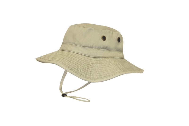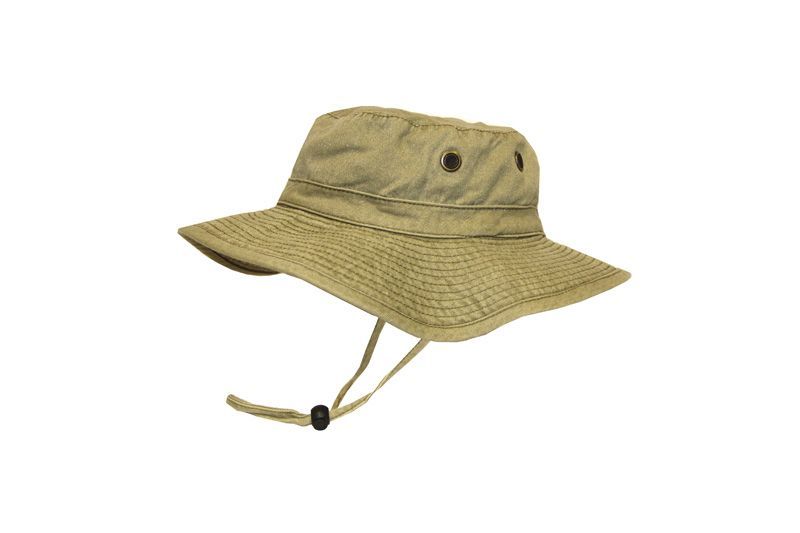 Premium washed 2 PLY pigment dyed cotton, wide brim with snap option, antiqued bronze mesh ventilation eyelets, shin strap with barrel lock.