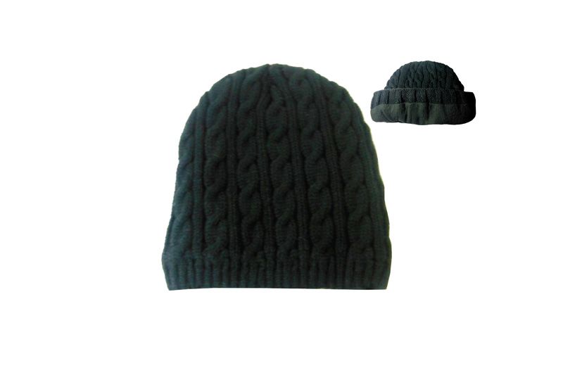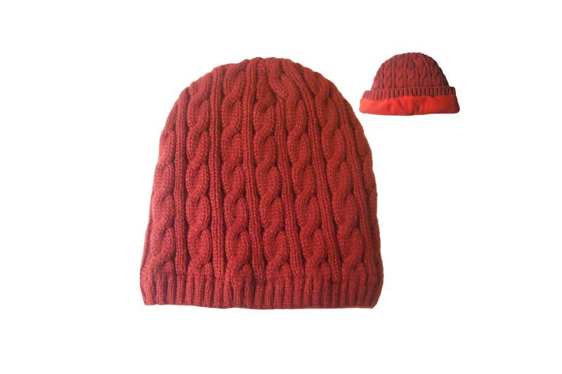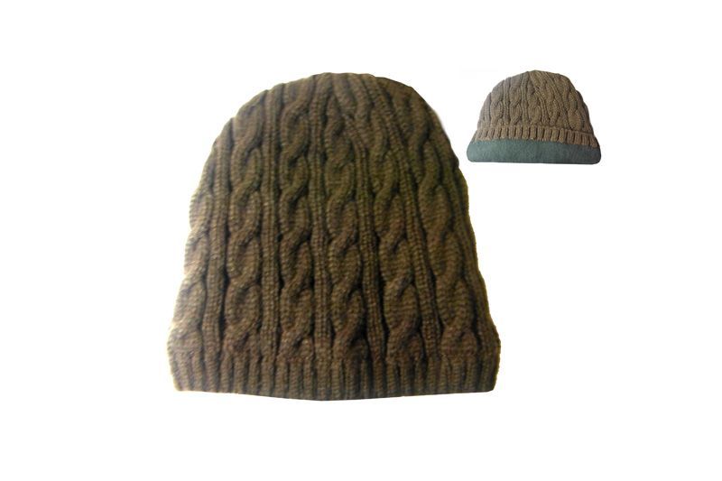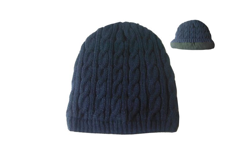 100% Acrylic cuffed beanie with twisted braid weave, fleece lined, unisex. One size